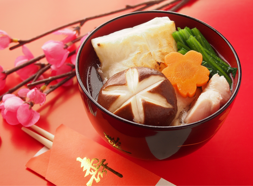 元旦にはお餅の入ったお雑煮(おぞうに)を食べるのが、日本流の楽しみです。