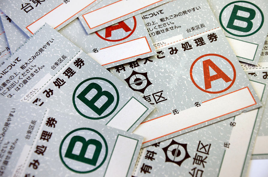 捨てるためのお金として、コンビニエンスストアなどで「ごみ処理券(シール)」を買います。