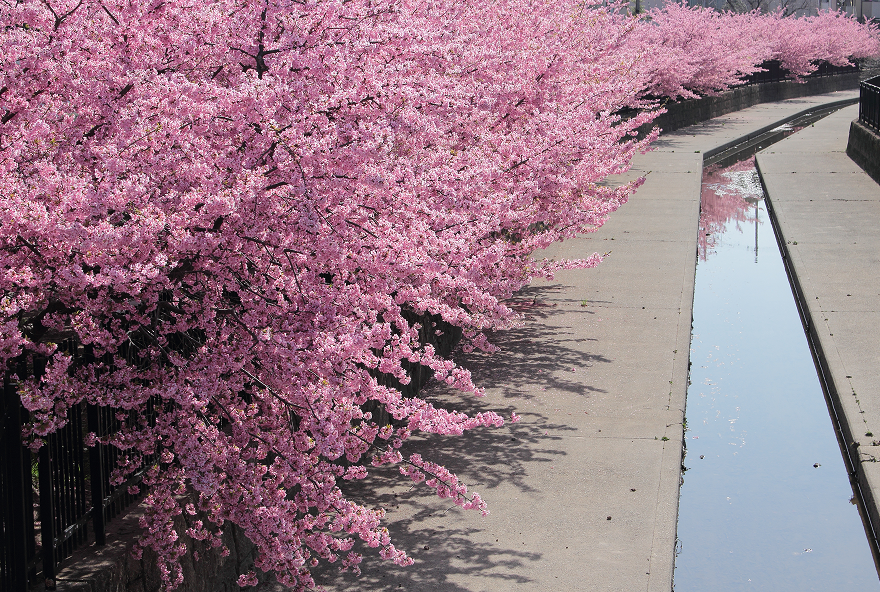 ソメイヨシノは満開から1週間ほどで散ってしまいますが、河津桜は約1ヶ月間も咲き続けます。