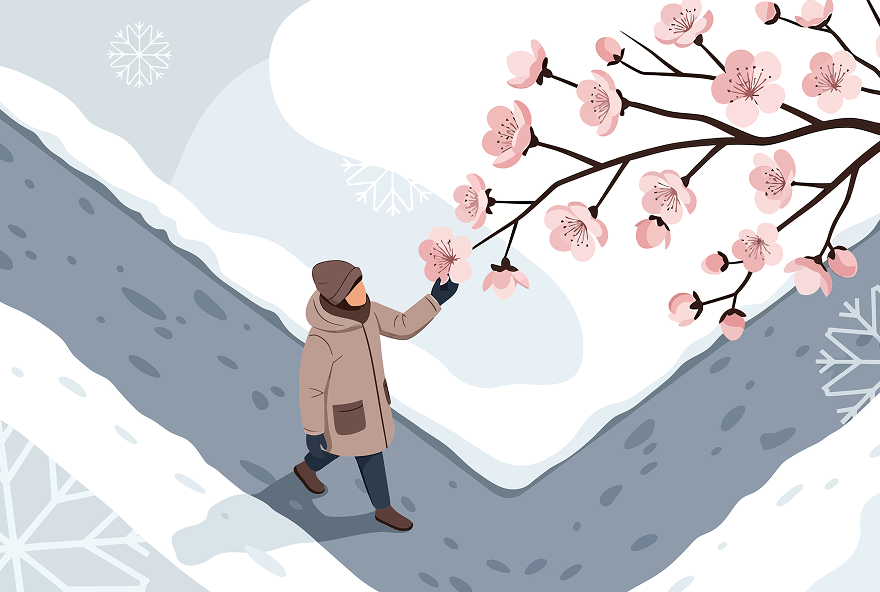春のコートではなく、ダウンジャケットなどの暖かい服装で出かけましょう。