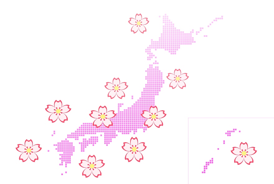 日本の桜は、暖かい南の沖縄1月下旬から咲き始め、少しずつ北の北海道5月上旬に向かって開花していきます。この開花の動きのラインを「桜前線」と呼びます。