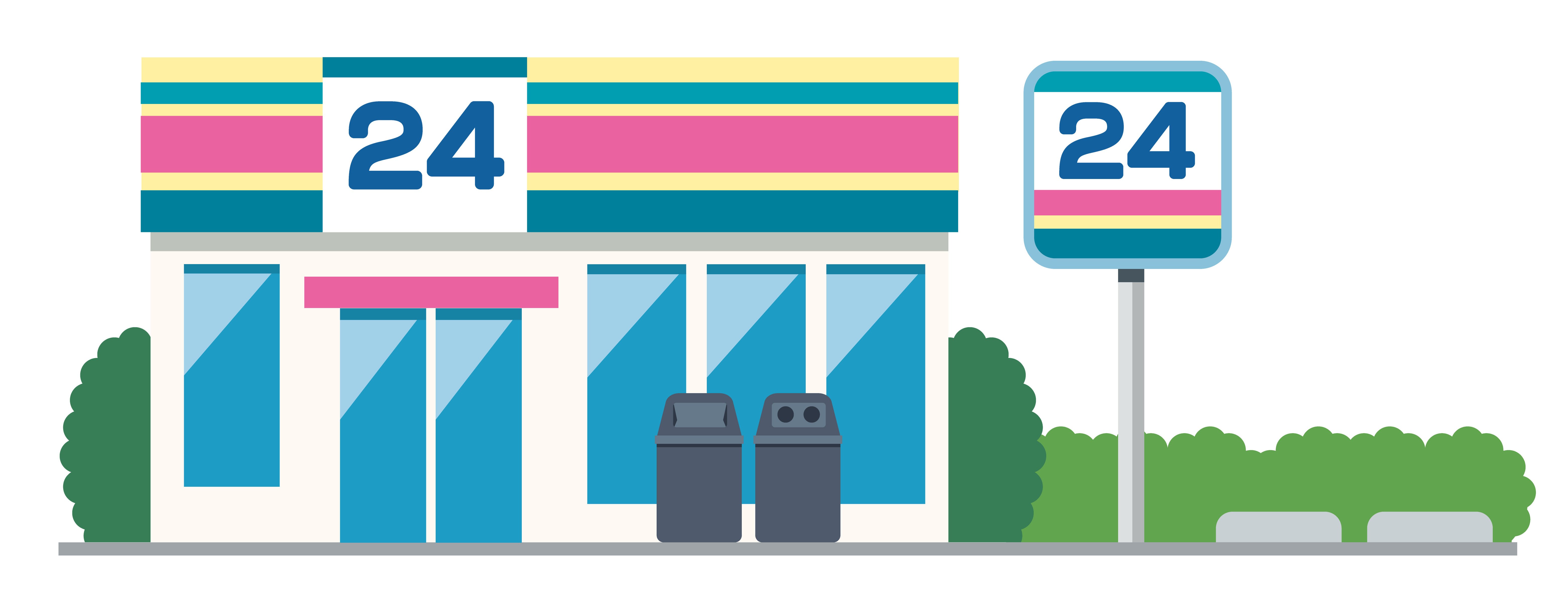 多くのコンビニは24時間(じかん)営業(えいぎょう)で、夜遅(よるおそ)くや早朝(そうちょう)でも利用(りよう)できるのが特徴です。仕事(しごと)の帰(かえ)り道(みち)や夜中(よなか)など急(きゅう)に必要になったときにも立(た)ち寄(よ)れる、暮(く)らしを支(ささ)える強(つよ)い味方(みかた)です。
