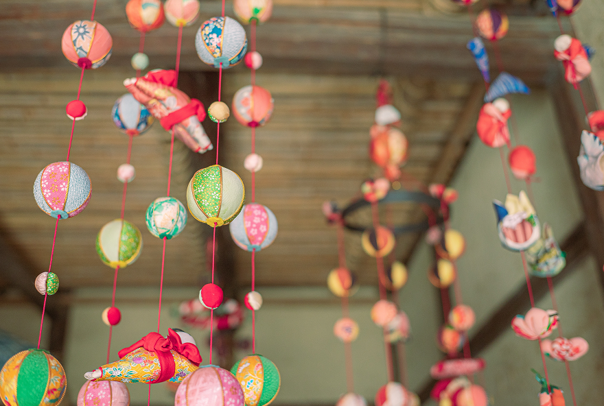 伊豆の稲取や九州の柳川などでは、天井からたくさんの小さな布製の人形を吊るす「つるし雛」という風習があります。